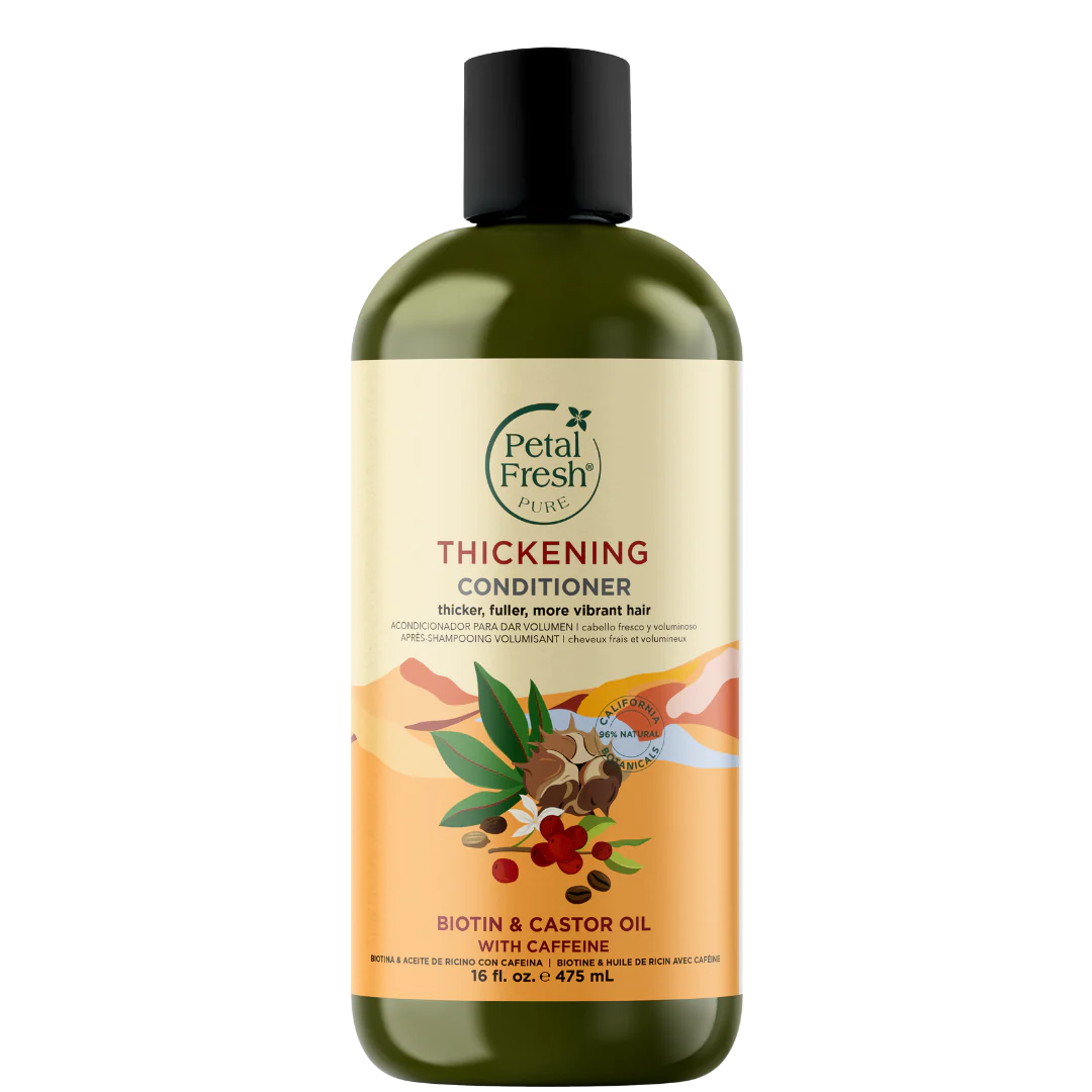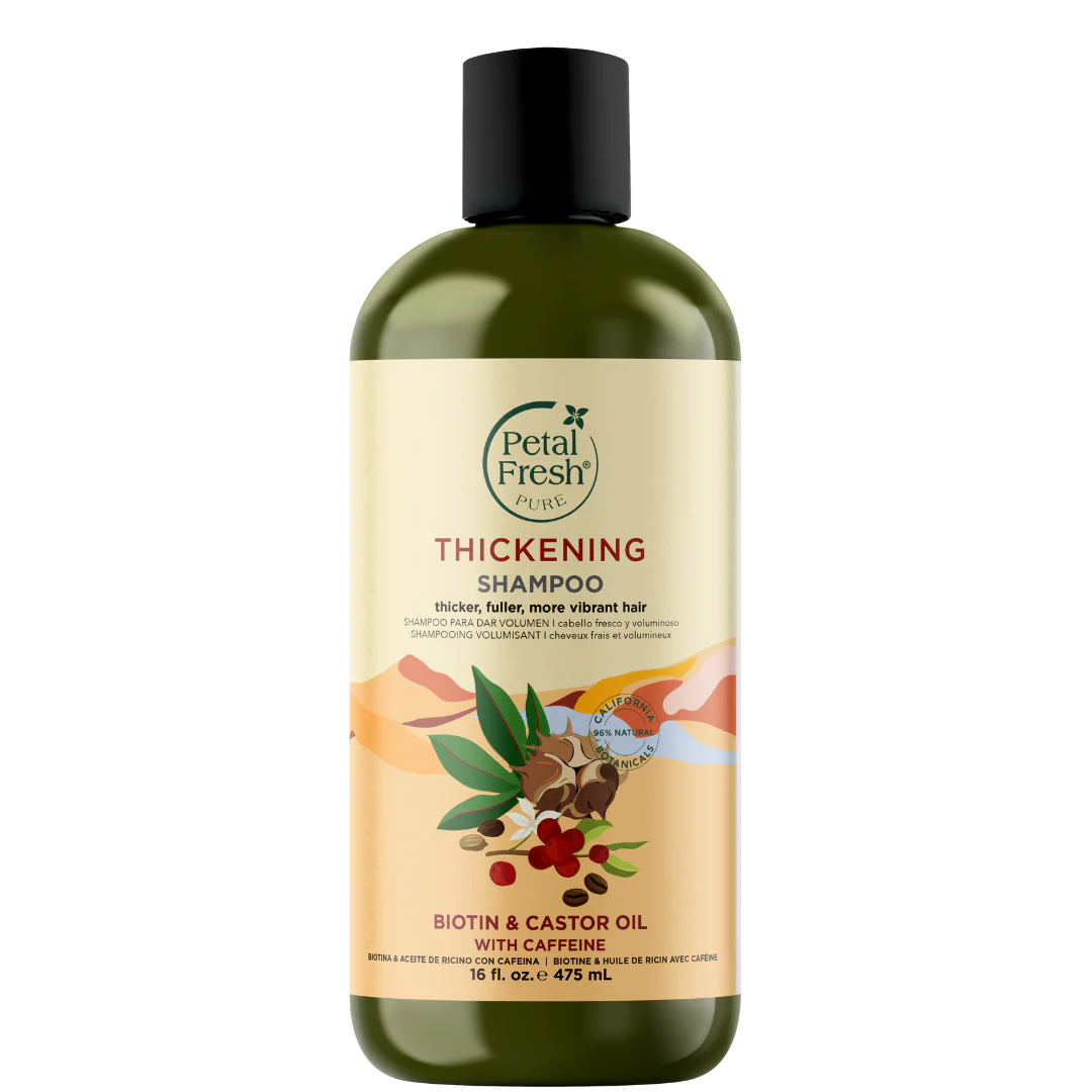 Achieve thicker, fuller, and more vibrant hair with Petal Fresh® Pure Thickening Shampoo. Let the Caffeine stimulate your hair follicles, promoting healthy growth and adding noticeable thickness, while the nourishing Biotin & Castor Oil works its magic to strengthen and revive your strands from root to tip.