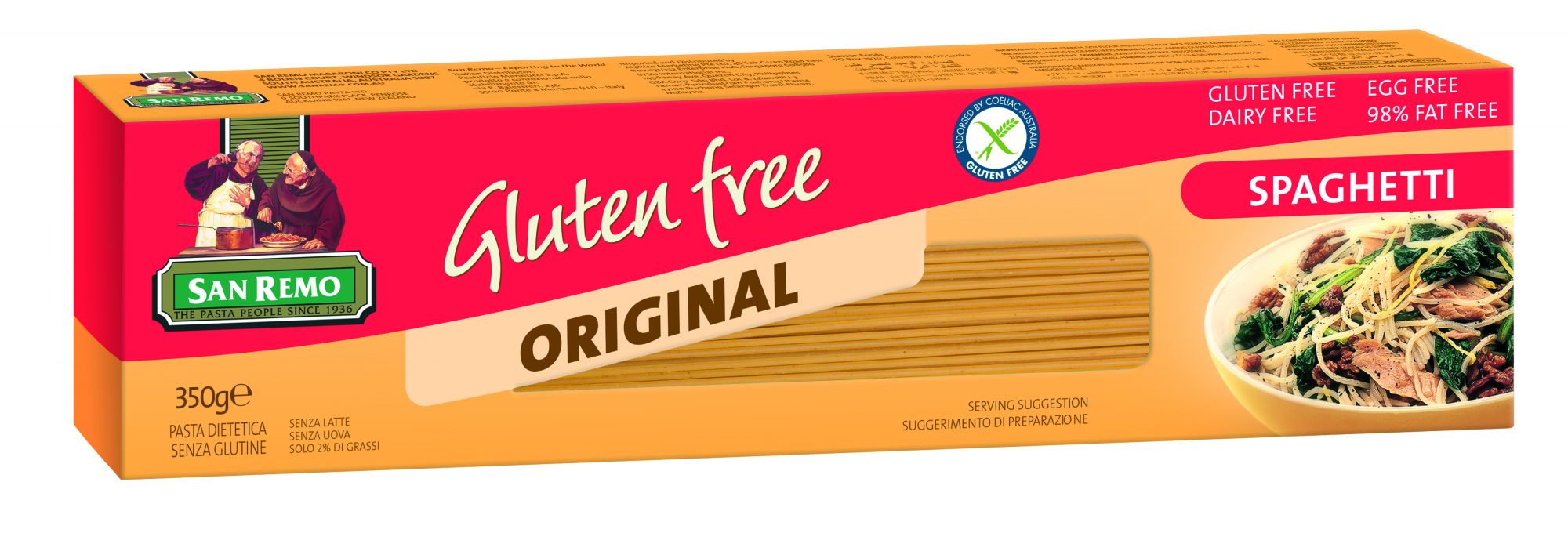 San Remo Gluten Free Spaghetti is slightly thicker than standard spaghetti which is described as long, thin, cylindrical pasta. It is associated with a well known dish, Spaghetti Bolognaise, and therefore pairs well with a Bolognaise sauce. Perfect for anyone following a gluten free diet, it is also dairy free and egg free.